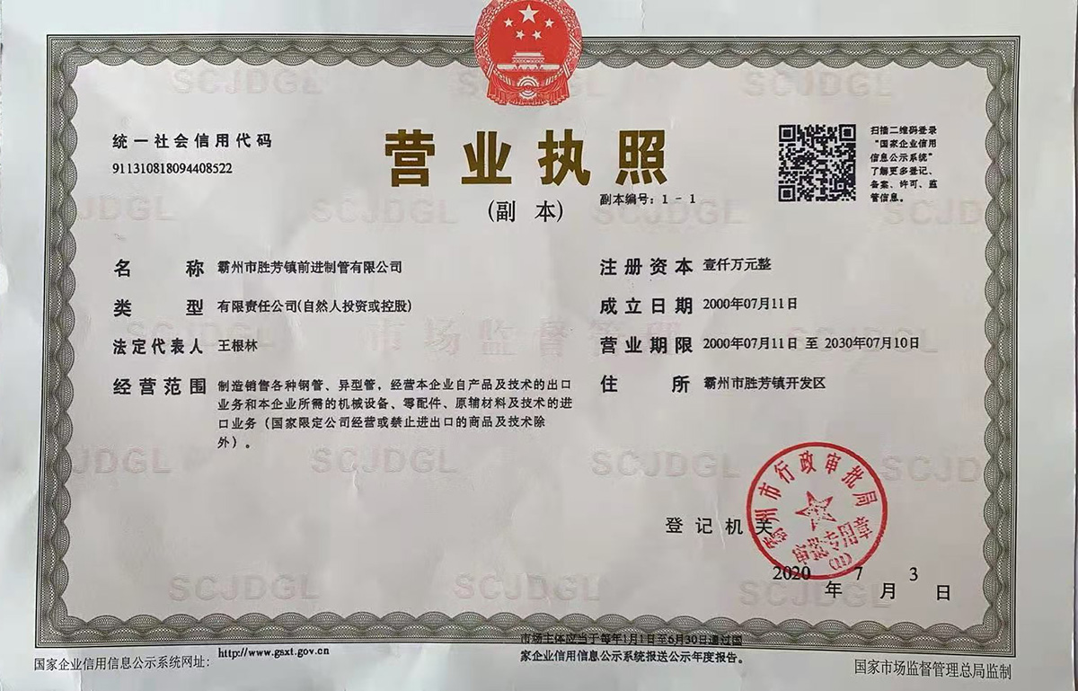 Bazhou Shengfang Town Qiandi Pipe Co., Ltd. 霸州市勝芳鎮(zhèn)前進(jìn)制管有限公司位于河北霸州市勝芳鎮(zhèn)開(kāi)發(fā)區(qū),地處京、津、保三大城市中心地帶。北距北京120公里,東距天津45公里,西有京九鐵路,北有津保高速公路貫通。